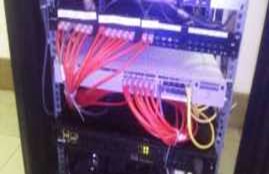 INSTALLED AND WIRED: NETWORK RACK WITH PATCH PANEL AND SWITCH SETUP. LAN CABLING AT ONNE MTERING STATION, PORT HARCOUT